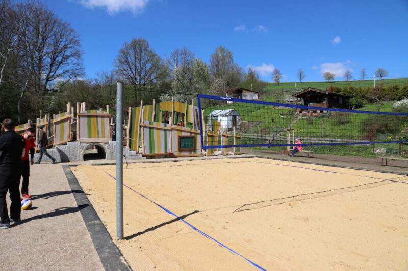 Zur Einweihung gab es ein Volleyballmatch, bei dem 4 Mannschaften engagiert jeder gegen jeden spielte. Auch die neuen Spielgeräte wurden von den vielen Kinder ausprobiert - es wurde geklettert, gerutscht und getobt.
