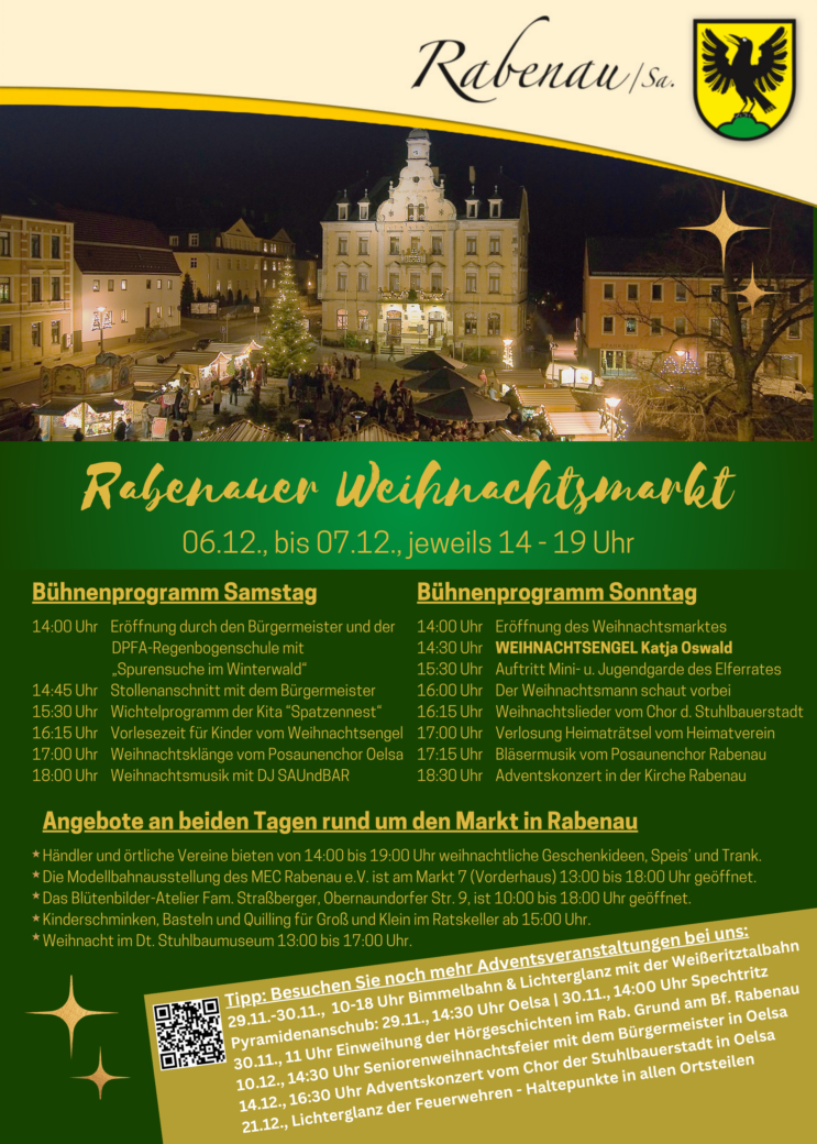 Der Rabenauer Weihnachtsmarkt ++ Bühnenprogramm ++ Händler/Speis und Trank ++ Angebote für Kinder ++ Weihnacht im Museum ++ Modellbahnausstellung