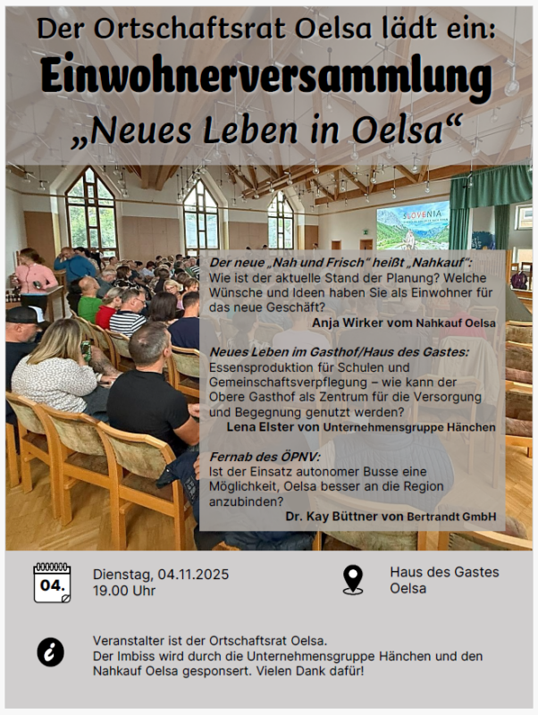 Einladung zur Einwohnerversammlung in Oelsa