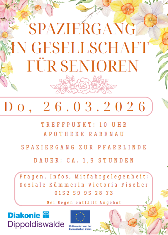 ich lade Sie herzlich zu einem "Spaziergang in Gesellschaft für Senioren" ein. Unser Ziel ist die Pfarrlinde. Die Dauer ca. 1,5 Stunden.
