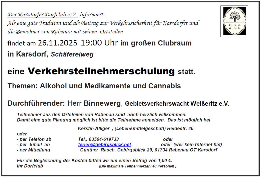 Als eine gute Tradition und als Beitrag zur Verkehrssicherheit für Karsdorfer und die Bewohner von Rabenau mit seinen Ortsteilen findet am